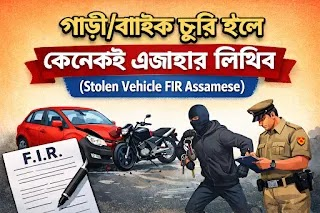বাহন চুৰি আজিৰ দিনত এটা সাধাৰণ কিন্তু গুৰুতৰ সমস্যা। গাড়ী, বাইক বা স্কুটাৰ চুৰি হ’লে ই কেৱল আৰ্থিক ক্ষতি নহয় — মানসিক চাপো সৃষ্টি কৰে। এনে পৰিস্থিতিত আটাইতকৈ গুৰুত্বপূৰ্ণ পদক্ষেপ হৈছে পুলিচৰ ওচৰত এজাহাৰ (FIR) দাখিল কৰা। সঠিকভাৱে লিখা এজাহাৰে তদন্ত সহজ কৰে আৰু বাহন উদ্ধাৰৰ সম্ভাৱনা বৃদ্ধি কৰে।