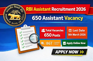 Reserve Bank of India (RBI)-এ RBI Assistant Recruitment 2026-ৰ অধীনত মুঠ 650টা Assistant পদ পূৰণৰ বাবে নিয়োগ বিজ্ঞপ্তি প্ৰকাশ কৰিছে। আগ্ৰহী আৰু যোগ্য প্ৰাৰ্থীয়ে 8 March 2026 তাৰিখৰ ভিতৰত RBI-ৰ অফিচিয়েল প’ৰ্টেলৰ জৰিয়তে অনলাইন আবেদন কৰিব পাৰিব।